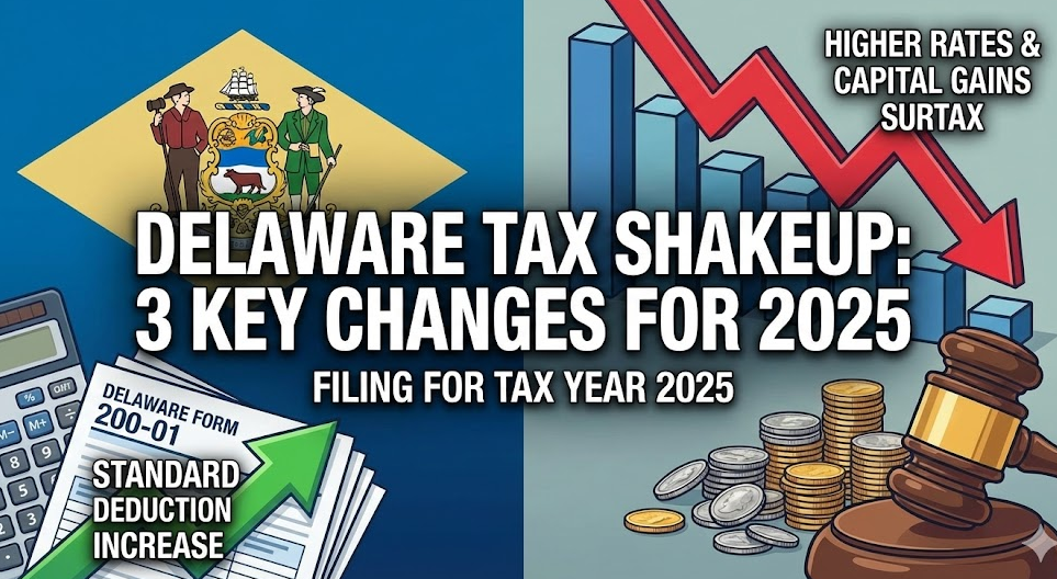 The Bottom Line: The gap between average earners and high earners is widening on Delaware tax forms. Most residents will benefit from the standard deduction change, but high-income households need to prepare for a steeper bill.