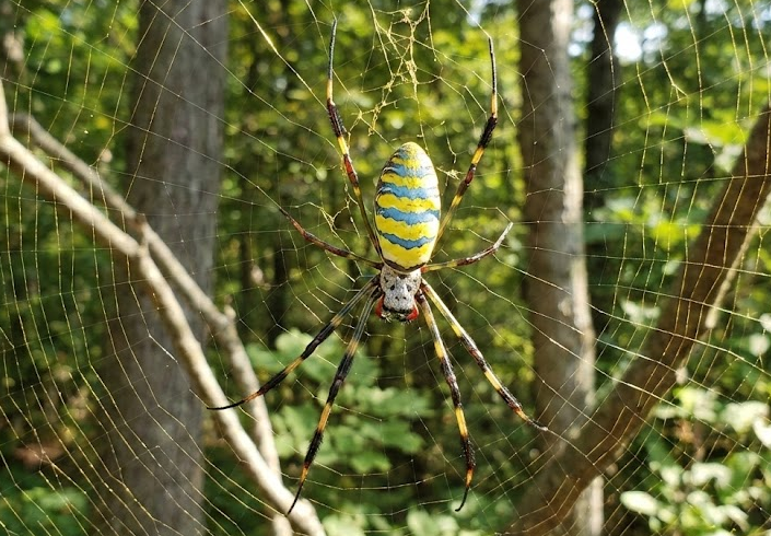 - The Look: They are impossible to miss. They feature bright, electric yellow and blue bands across their backs and red markings on their bellies. Their webs are equally impressive, often spanning up to 10 feet wide and made of a golden-hued silk that is stronger than kevlar.